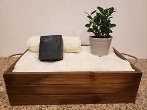 Ingredients: A saponified blend of Olive Oil, Organic Sustainable Palm Oil, Organic Coconut Oil, Organic Shea Butter), Fragrance, Activated Charcoal.