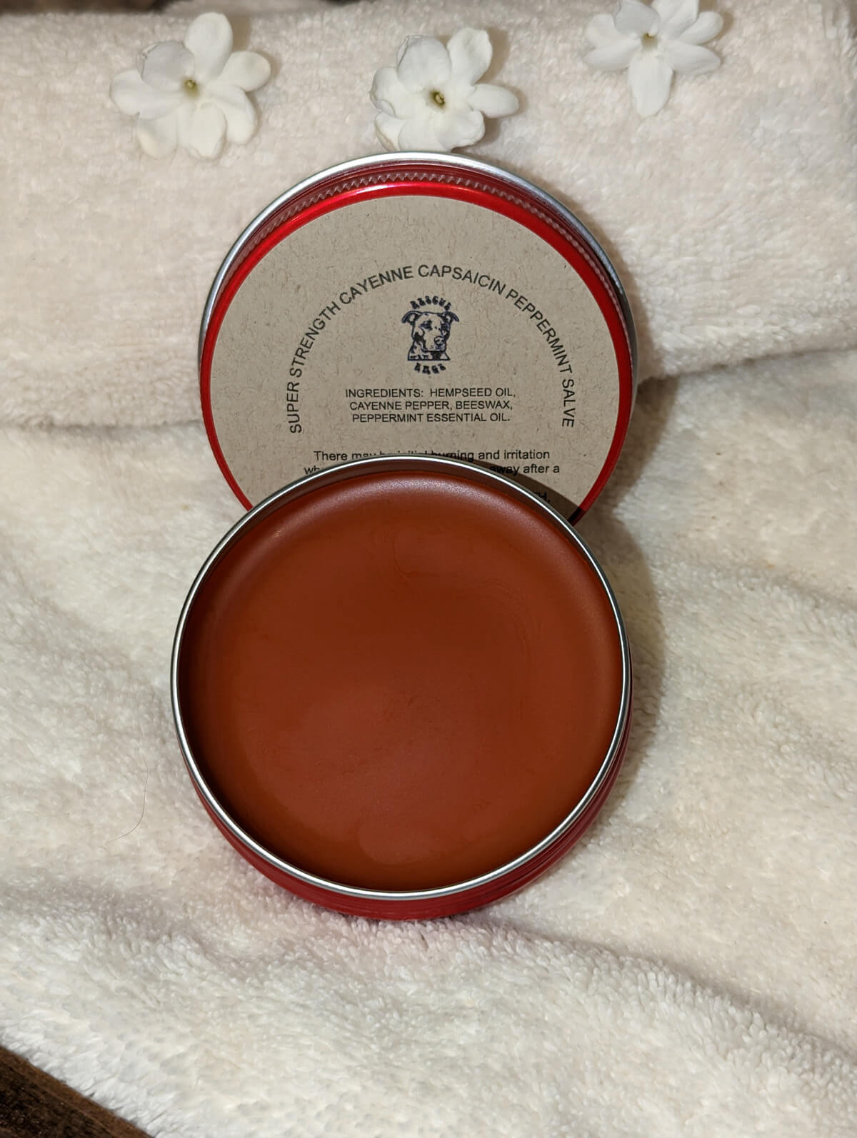 Ingredients: Cayenne infused hempseed oil, beeswax, peppermint essential oil and a natural preservative (phenonip).