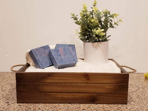 Ingredients: A saponified blend of Coconut Oil, Canola Oil, Soybean Oil, Organic Shea Butter, Water, Sodium Hydroxide Lye, Olive Pomace Oil, Sunflower Oil Sea Salt, Ground Oatmeal, Fragrance & Colorant