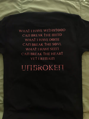 BACK:. WHAT I HAVE WITHSTOOD CAN BREAK THE MIND. WHAT I HAVE DONE CAN BREAK THE SOUL. WHAT I HAVE SEEN CAN BREAK THE HEART YET I REMAIN UNBROKEN.