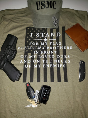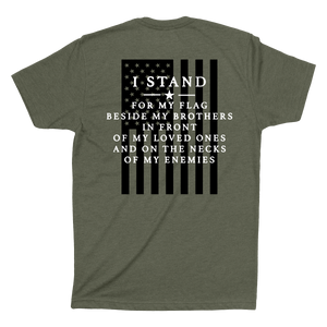 I STAND FOR MY FLAG, BESIDE MY BROTHERS, IN FRONT OF MY LOVED ONES AND ON THE NECKS OF MY ENEMIES.