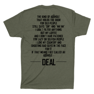 IM AN ASSHOLE. THE KIND OF ASSHOLE THAT HOLDS THE DOOR FOR OLD PEOPLE. STILL SAYS SIR OR MA'AM . I DON'T FILTER ANYTHING BUT MY COFFEE AND I DON'T HAVE PATIENCE FOR LAZY OR SELFISH PEOPLE. I LOVE MY COUNTRY AND SHOOTING PEOPLE IN THE FACE FOR IT IF THAT MEANS I GET CALLED AN ASSHOLE... DEAL