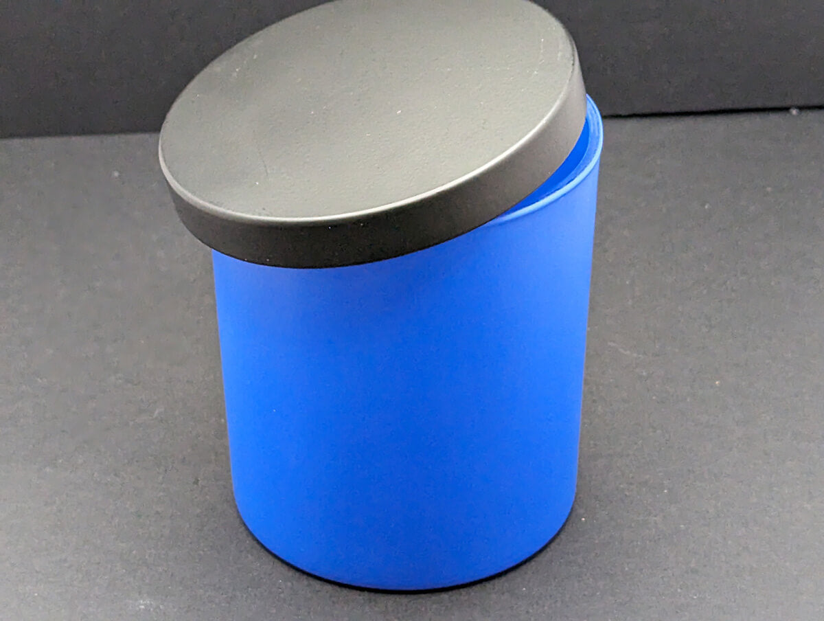10 ounce blue jar with sealed black lid (approx. 8.5 fluid ounces of wax)