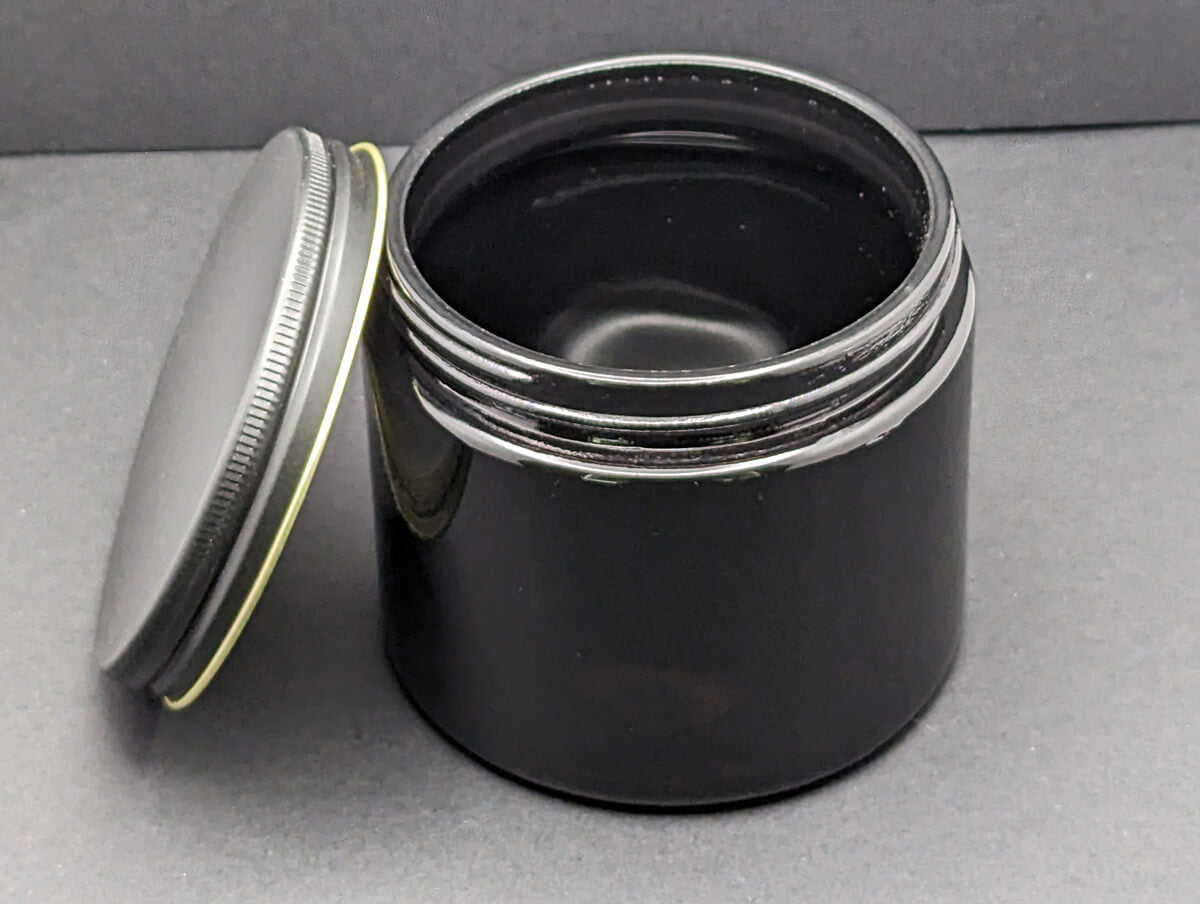 12 ounce premium black straight sided jar with lid (approx. 10 fluid ounces of wax)