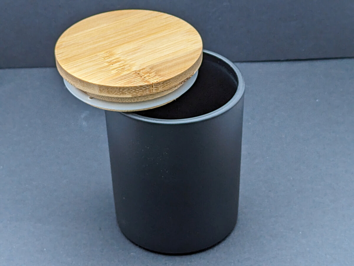 9 ounce black jar with sealed bamboo lid (approx. 8 fluid ounces of wax)