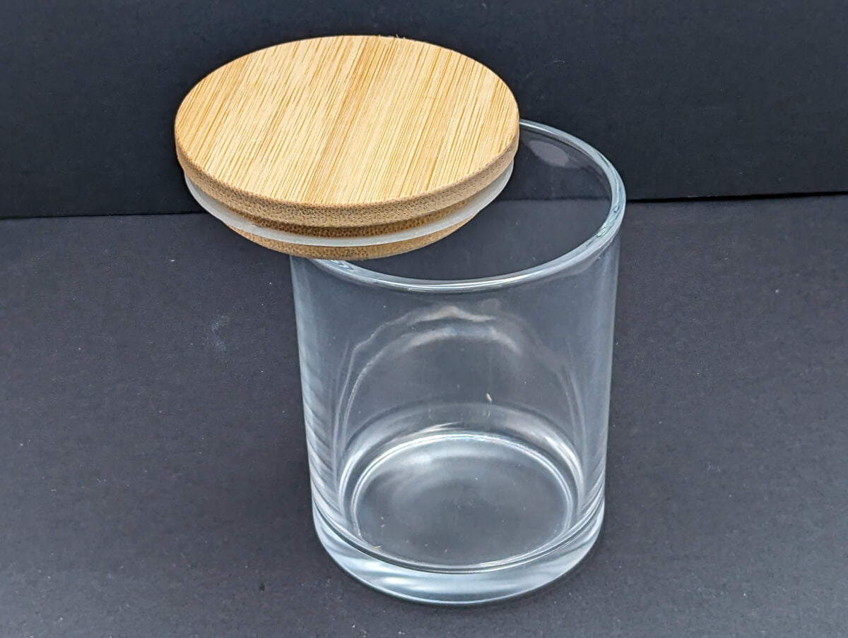9 ounce clear jar with sealed bamboo lid (approx. 8 fluid ounces of wax)