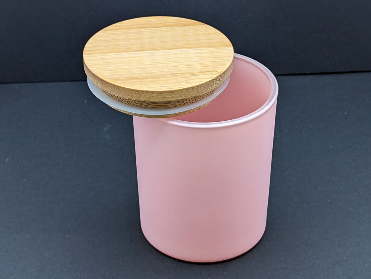 9 ounce pink jar with sealed bamboo lid (approx. 8 fluid ounces of wax)