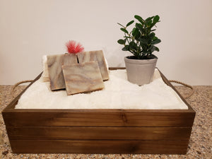 Ingredients: A saponified blend of Olive Oil, Organic Sustainable Palm Oil, Coconut Oil, Shea Butter), Water, Sodium Hydroxide, Fragrance, Mica, Titanium Dioxide, Iron Oxide, Tin Oxide, Ultramarines.